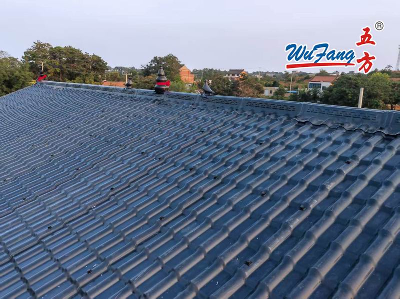 合成樹脂瓦的建筑簡易,施工期短:所有構(gòu)件均在工廠預制的完成,現(xiàn)場只需簡單的一種拼裝,從而大大縮短了施工的具體周期,一座大約6000平方米的建筑物,只需大概40天即可基本安裝完成。